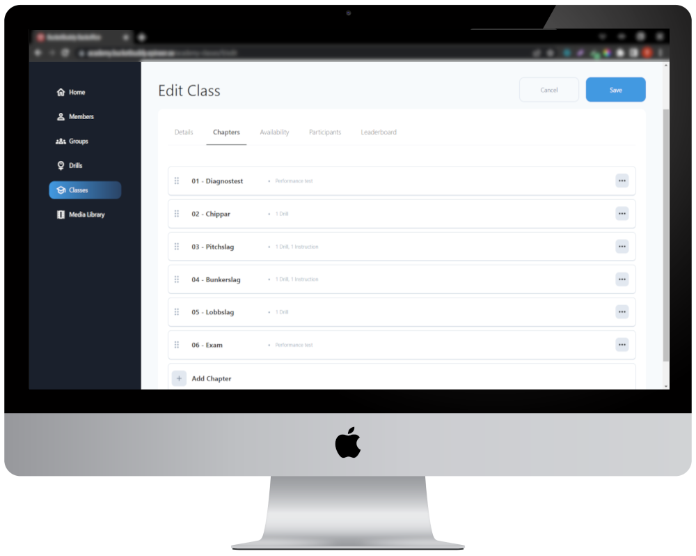 Select an Academy to get access to the classes from their PGA coaches. Classes are structured in chapters and contains instructions and drills.
